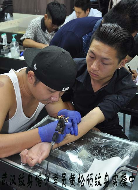 武汉专业纹身店:贵州纹身学员舒进纹身练习中