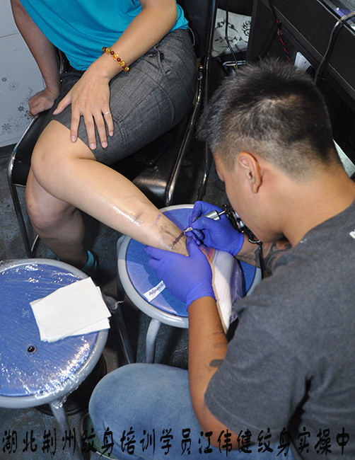 来自湖北荆州纹身培训学员江伟健脚踝纹身图案实操中