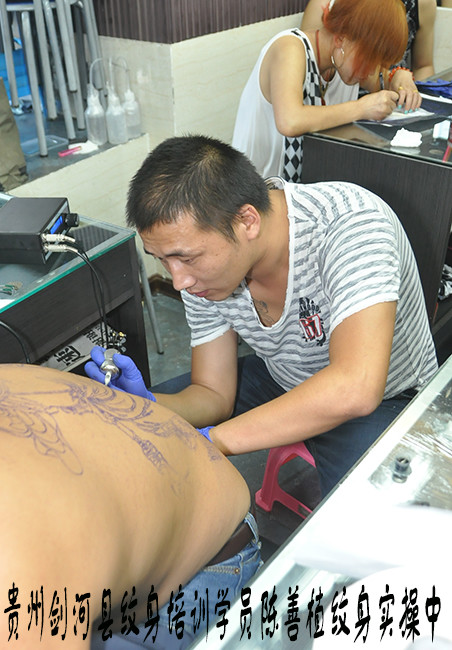 贵州剑河县纹身培训学员陈善植纹身实操中