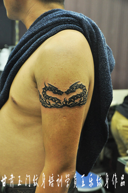 武汉最好的纹身学校学员王乐打造的大臂图腾龙纹身作品