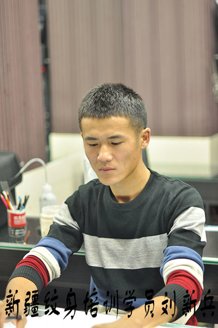 新疆哈密纹身培训学员刘跃东纹身练习中