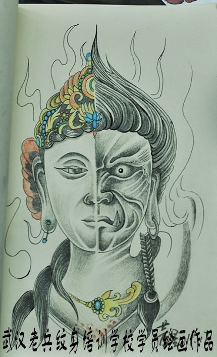 武汉老兵纹身学校纹身学员制作的欧美素描作品