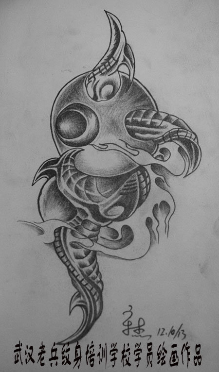 素描蝎子作品由武汉最好的纹身学校纹身学员制作