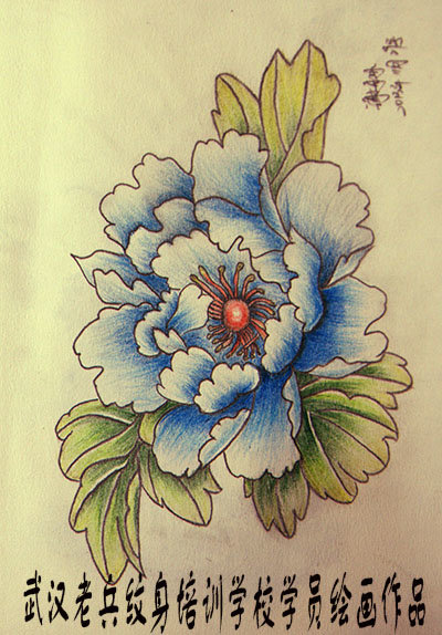 牡丹素描作品由武汉最好的纹身培训学校纹身学员制作