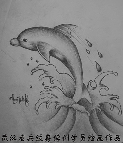 武汉老兵纹身培训学校纹身学员制作的素描海豚作品