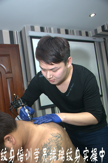 安徽马鞍山刺青培训学员端瑞后背刺青图案实操中