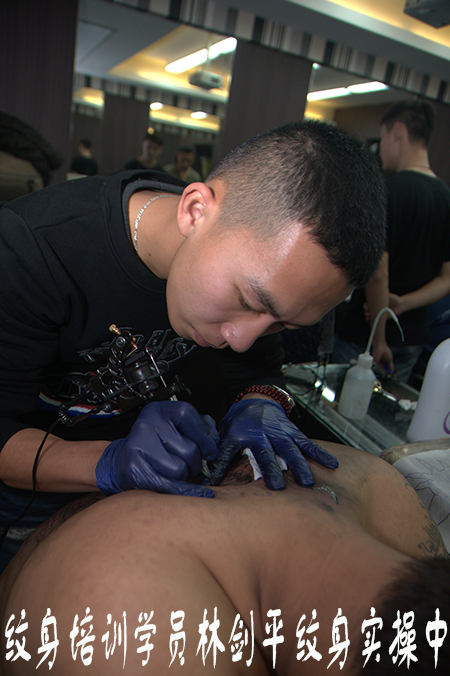 武汉老兵刺青学校介绍来自新疆刺青学员熊育刺青实操中