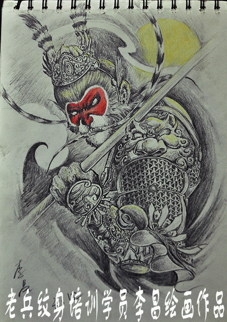 武汉老兵纹身培训学校学员绘制的日本般若素描作品