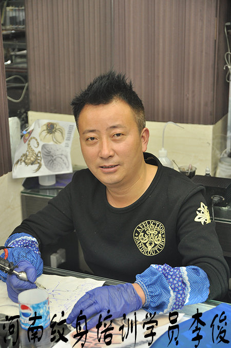 河南淇县刺青培训班学员郝贞堂刺青学习中
