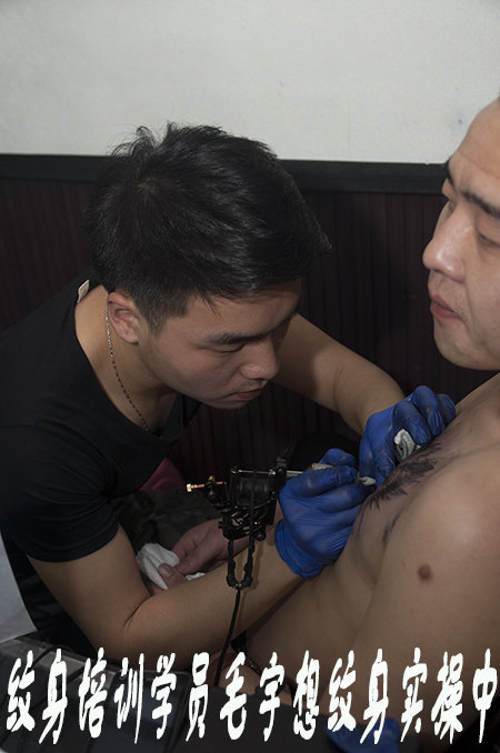 武汉最好的刺青培训学校学员毛宇刺青实操中