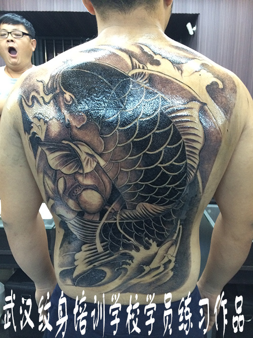 满背鲤鱼刺青图案武汉专业刺青学校学员制作