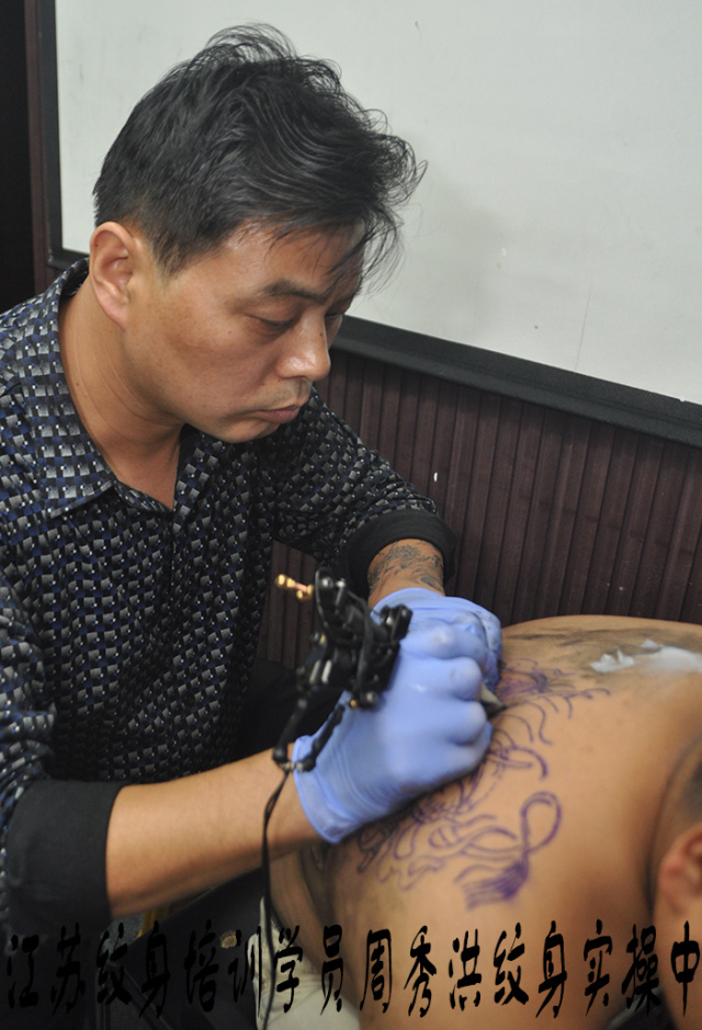 江苏最好的刺青培训学校学员周秀洪满背刺青图案实操