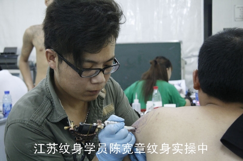 江苏纹身学员陈宽章大臂纹身图案实操中