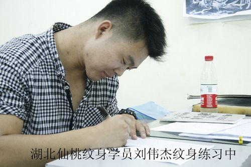 湖北仙桃文身学员刘伟杰文身练习中