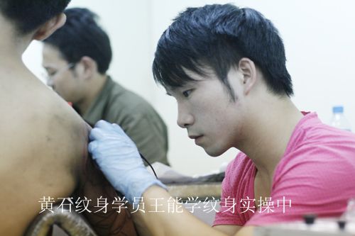 武汉专业文身学校:黄石文身学员王能学文身图案实操中