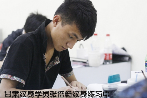 甘肃文身学员张倍畅文身练习中