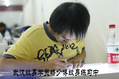 武汉文身培训:武汉文身学员杨少博文身练习中