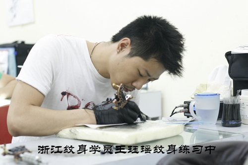 武汉老兵纹身培训:浙江文身学员王珏瑶文身练习中