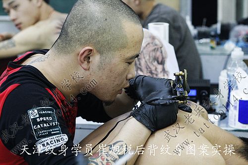 老兵纹身培训学校:天津纹身学员崔旭税后背纹身图案实操