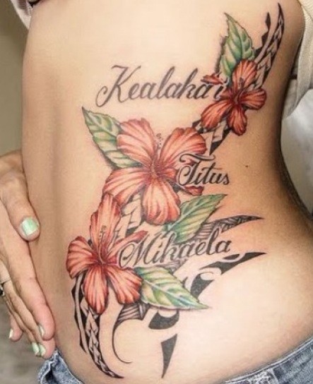 武汉老兵纹身店:美女侧腰花卉纹身图案图片大全