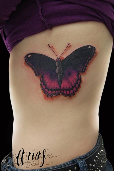 侧腰彩色蝴蝶纹身图案图片大全