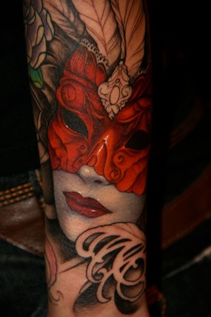 手部漂亮的面具美女纹身图案图片大全