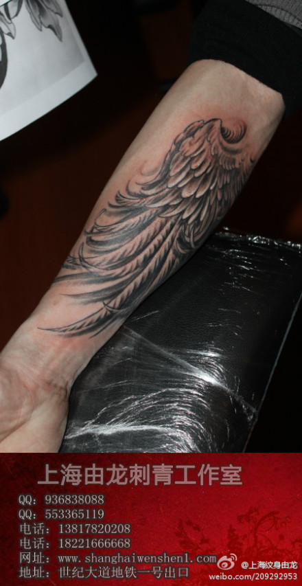 手臂时尚精美的翅膀纹身图案