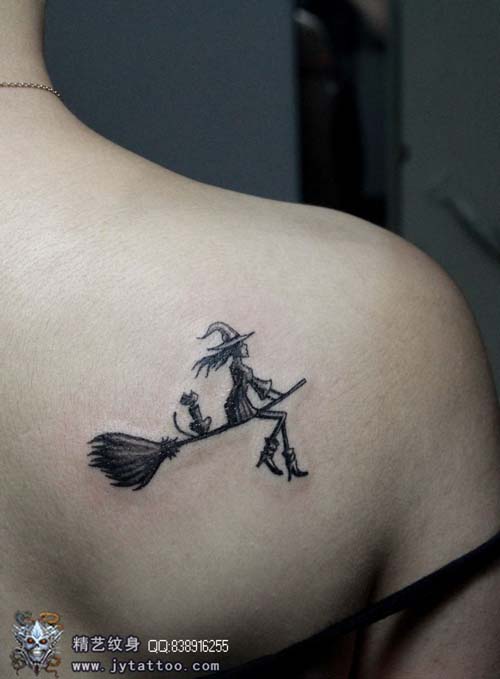 女生后肩背可爱时尚的小巫师纹身图案