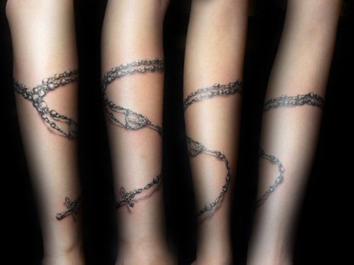 女生手臂时尚精美的吊链纹身图案