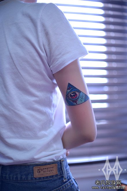 女生手臂一款时尚的彩色上帝之眼纹身图案
