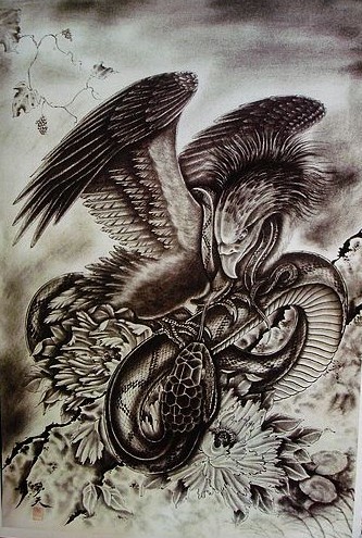 老鹰与蛇纹身手稿图案由武汉纹身店提供