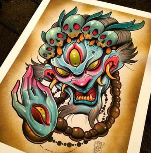 一款彩色school纹身图案由武汉最好的刺青店提供