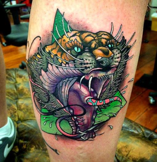 腿部彩色school老虎纹身图案