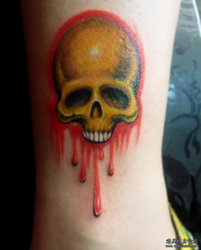 腿部骷髅纹身图案纹身图片