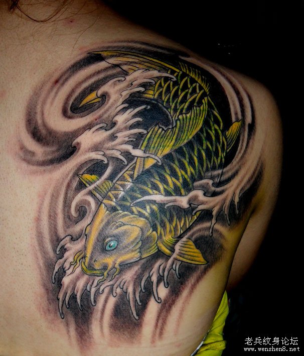 背部鲤鱼纹身图案纹身图片