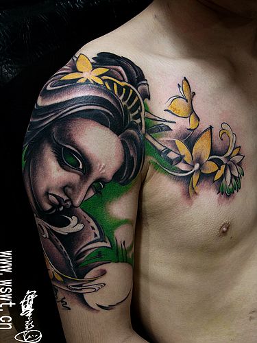 武汉专业文身:半胛美女花纹身图案图片大全