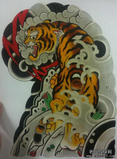 一款时尚经典的半胛虎纹身手稿