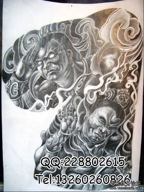 半胛千里眼顺风耳纹身图案纹身图片—武汉纹身店提供