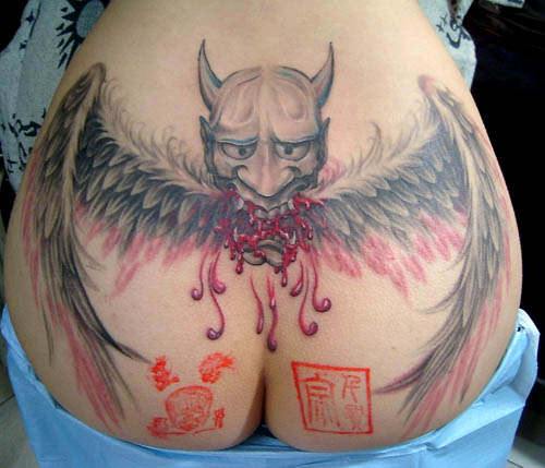 湖北黄石纹身店:后腰般若翅膀纹身图案图片