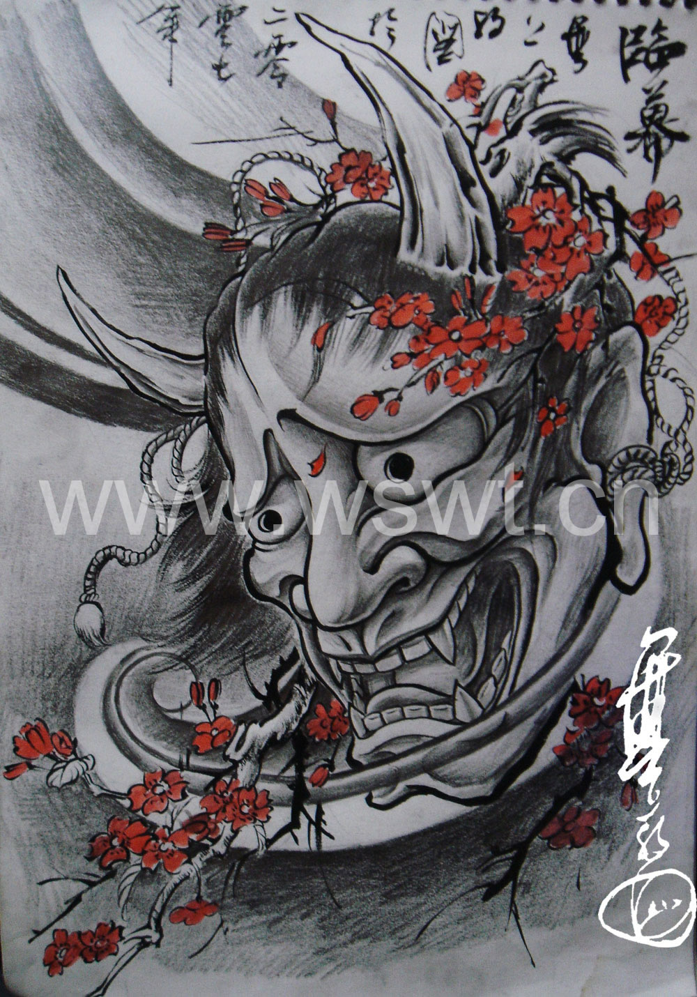 武汉最好的纹身店:满背般若樱花文身图案大全