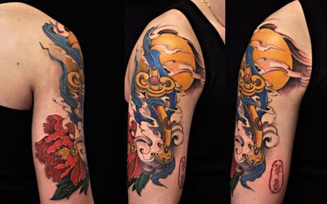 手臂纹身图案大全:超酷的手臂花旦纹身图案图片