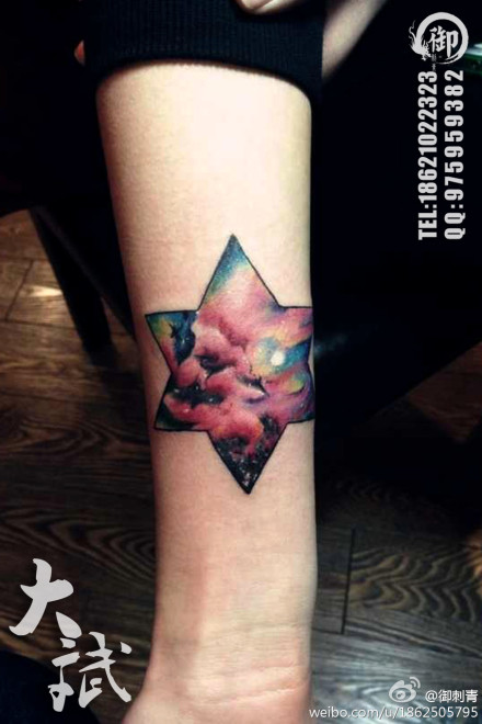 手臂潮流好看的星空六芒星纹身图案