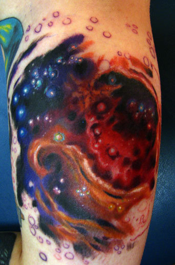 腿部时尚经典的彩色星空纹身图案