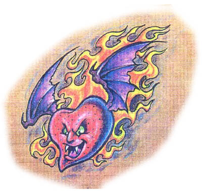 爱心翅膀火焰纹身图案图片(tattoo)