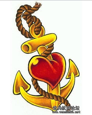 武汉专业刺青店为你提供提款彩色爱心铁锚纹身图案纹身图片