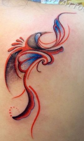 一款美女肩部彩色图腾藤蔓纹身图案纹身图片