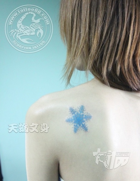 美女肩部彩色雪花纹身图案纹身图片