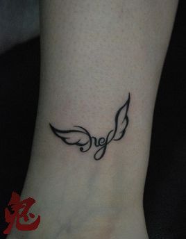 女孩子腿部小巧可爱的图腾小翅膀纹身图案