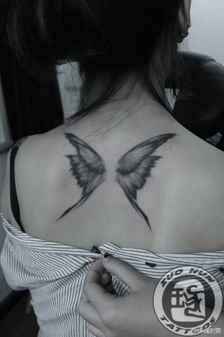 美女背部唯美漂亮的蝴蝶翅膀纹身图案