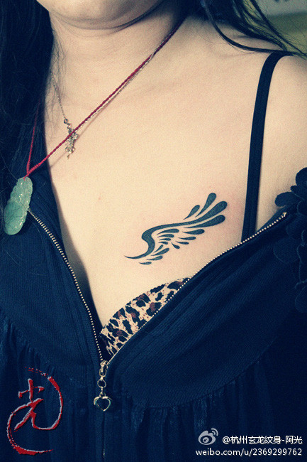 美女胸部时尚唯美的图腾翅膀纹身图案